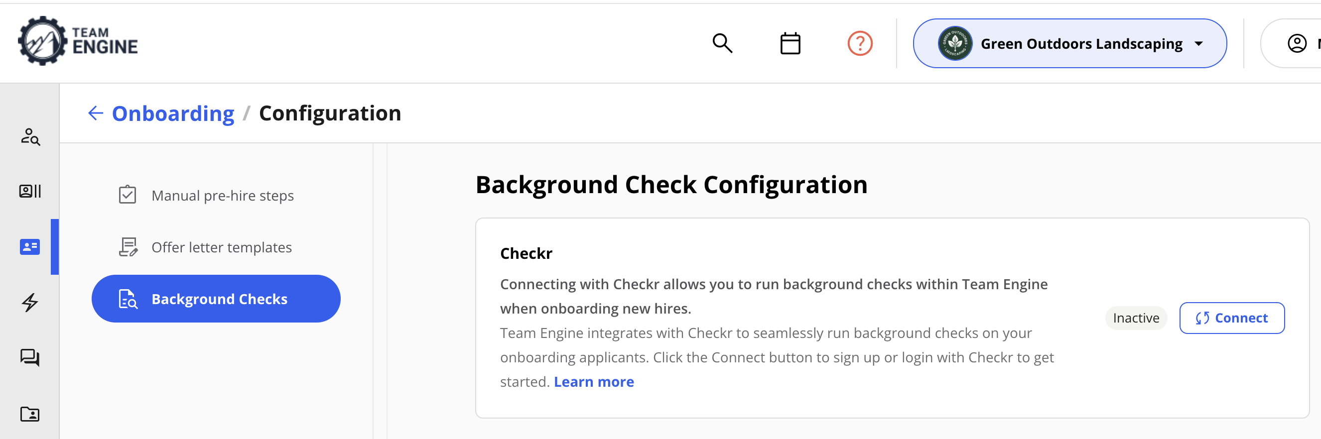 - Navigate to Integrations: Go to Onboarding > Onboarding Integrations > Background Checks.