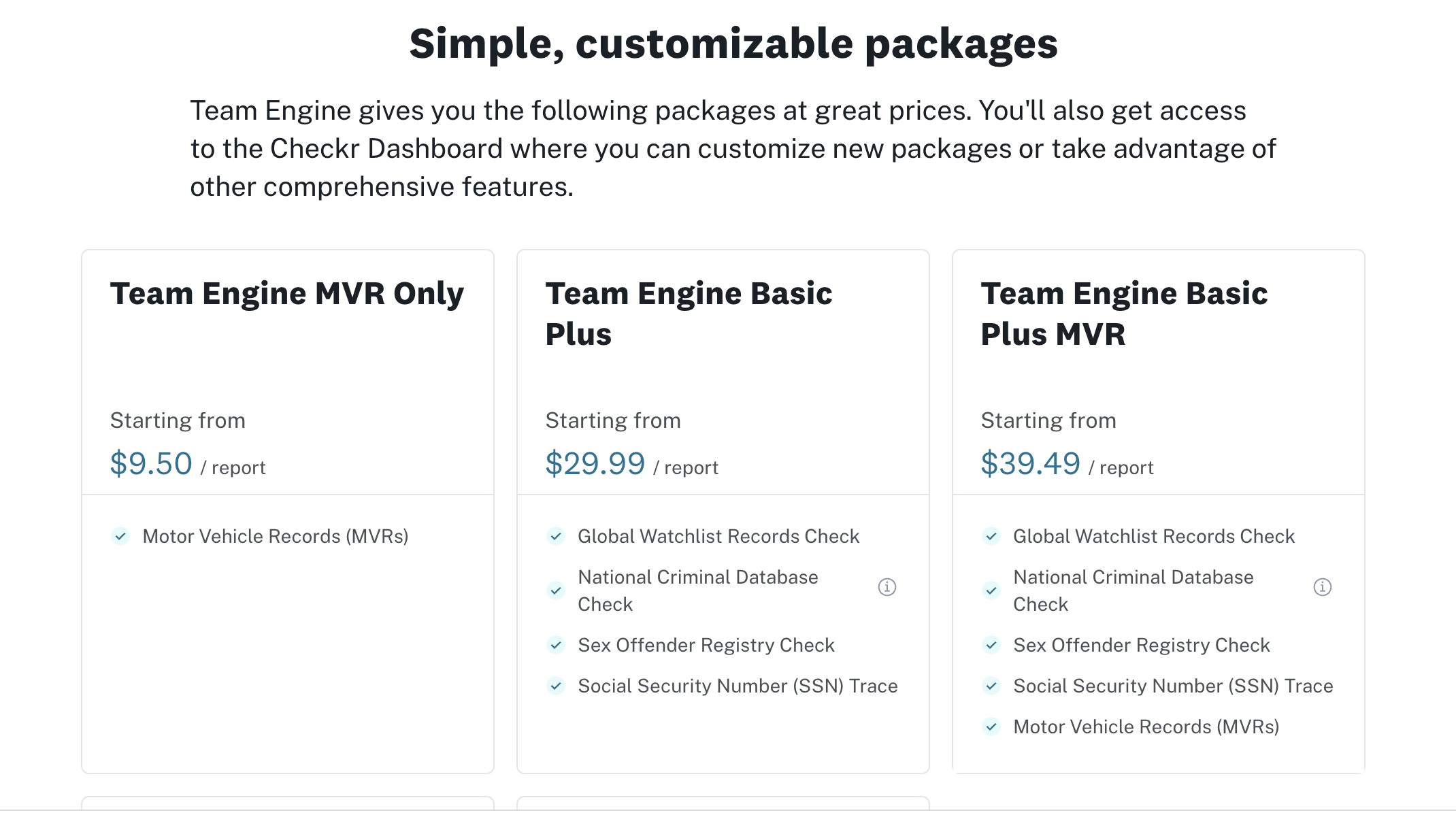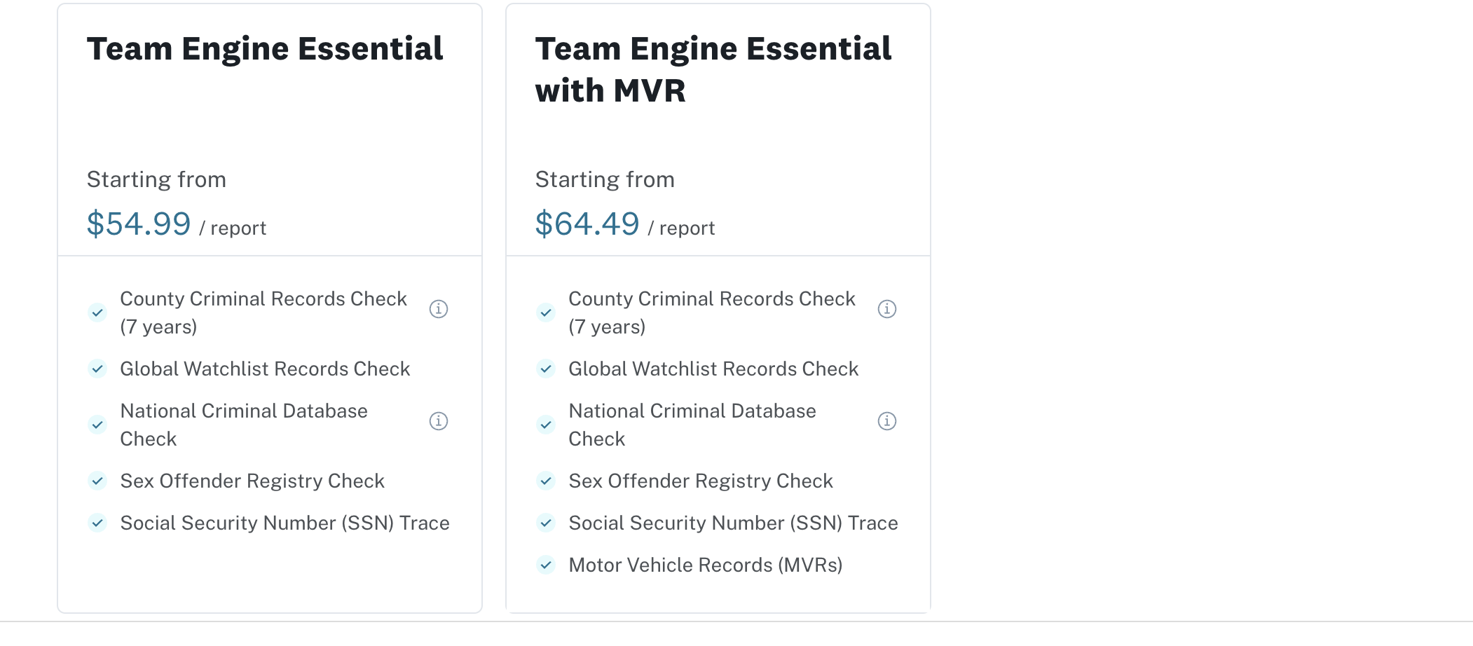 A: Reports are billed directly through Checkr. You will receive our discounted partner pricing, with no markups. Options and pricing below.