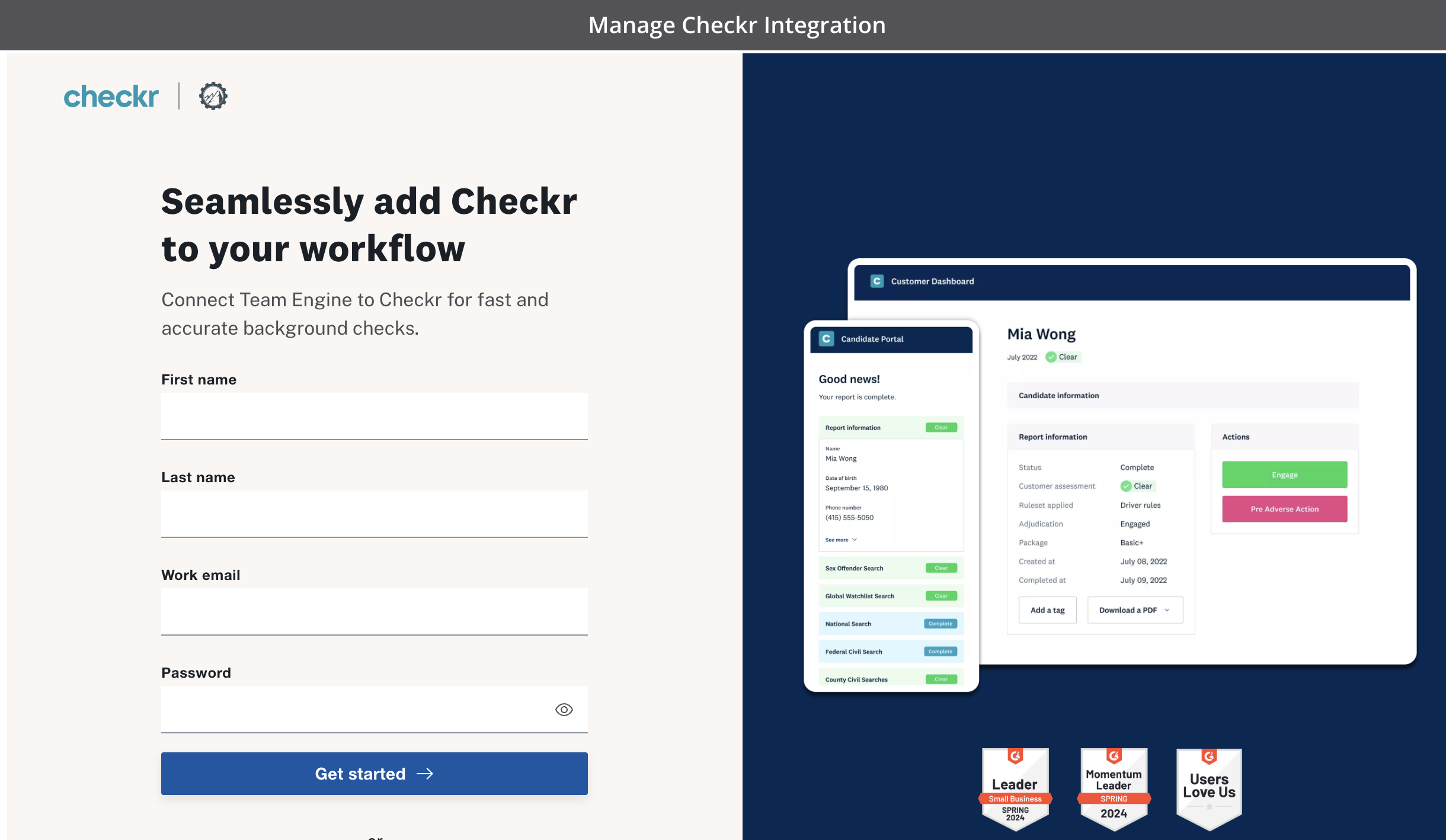By using our Checkr integration, you can simplify a complex process, maintain compliance, and provide a professional experience for your candidates.