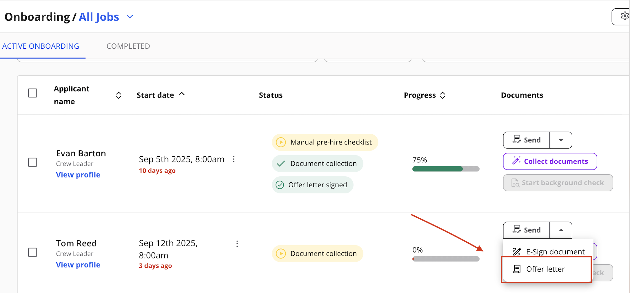 - Seamless E-signatures: Once you've created the document, you can send it to the candidate for an electronic signature via text. This is faster than traditional e-mail, and it creates a legally binding agreement instantly.