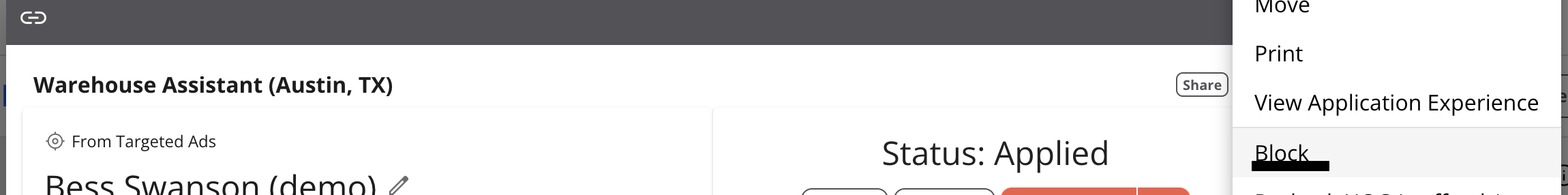 You can block an applicant in just a few clicks: