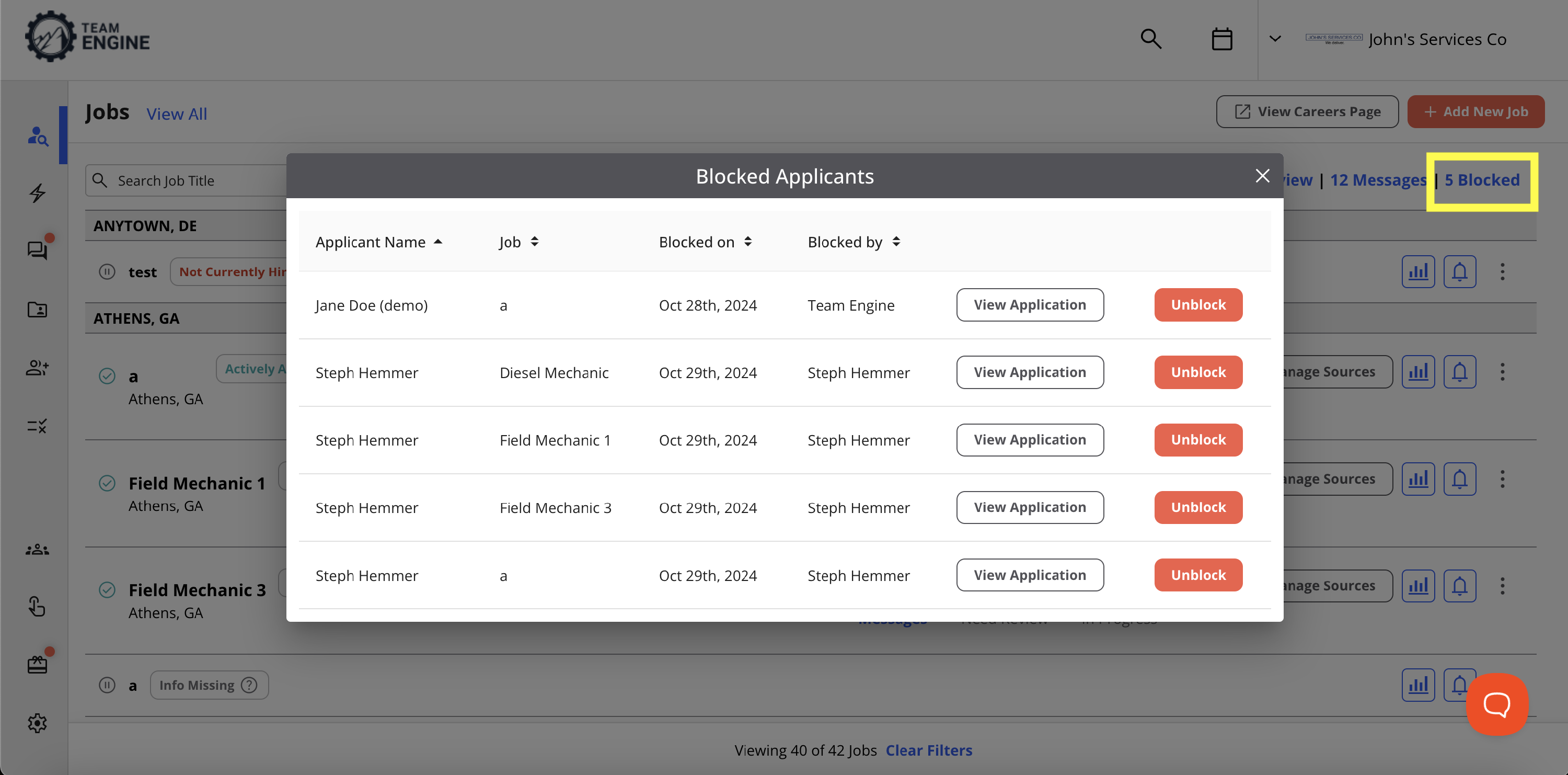 - Unblock applicants individually from either the Blocked list or directly from their profile if communication needs to resume.