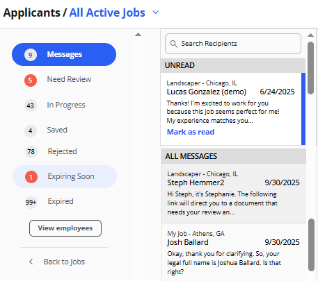 Messaging is valuable because it allows employers to reach out to applicants in new ways that significantly improve response time. Texting applicants has already proven itself to be incredibly efficient at getting responses from candidates. Now that you know the ins and outs of messaging with Team Engine, start engaging with applicants so you can start filling roles.