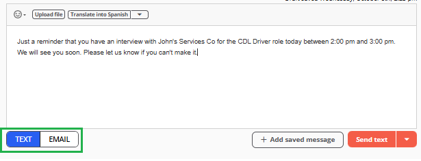 If you reply to that email, your response will automatically go to the applicant through Team Engine — whether it was a text or email originally.