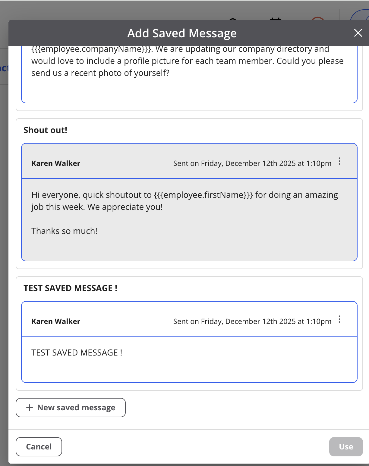 - Click Use next to a suggested message to send it right away