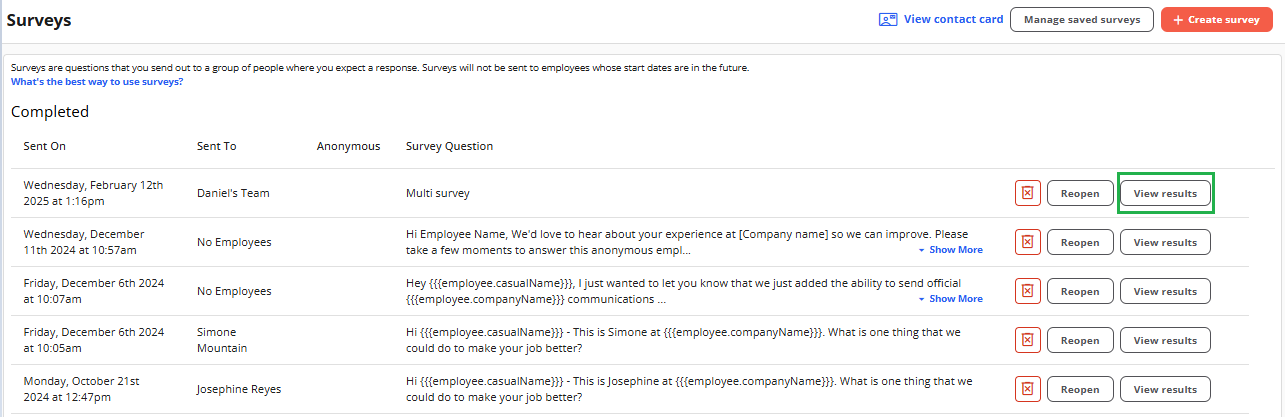 - Sort results by name or date - By clicking on a column header you can see answers by most recent, employee name alphabetically, etc.