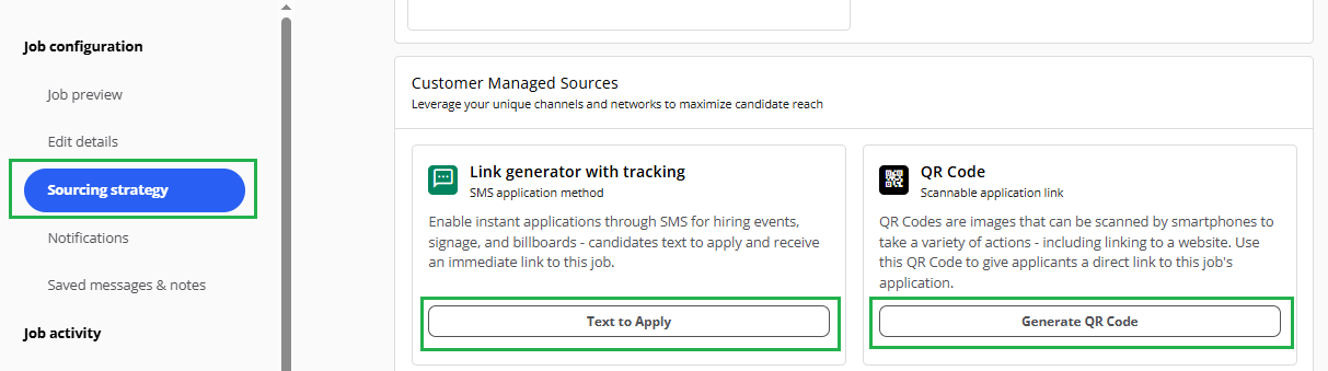 You can generate Text-to-Apply links or QR codes for either: