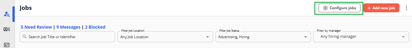 - From the Jobs page, click Configure Jobs.