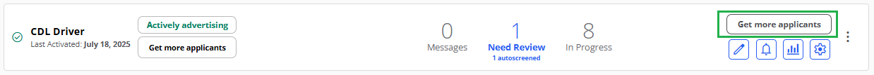 - Go to the job you want to advertise, and click "Get More Applicants".