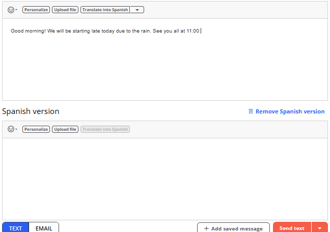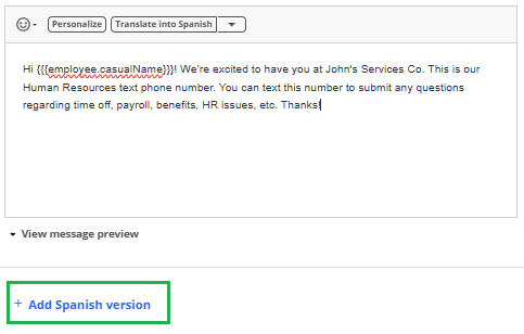 - Click “Add Spanish Version” at the bottom of the message box.