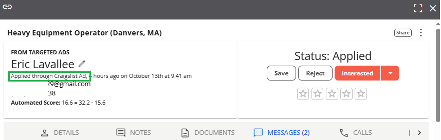 - This lets you centrally manage all applicants and see which ones came via Craigslist.