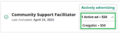 - After posting, you’ll see a "# Active Ad" button next to the job in your dashboard. Click it to view ad performance metrics.