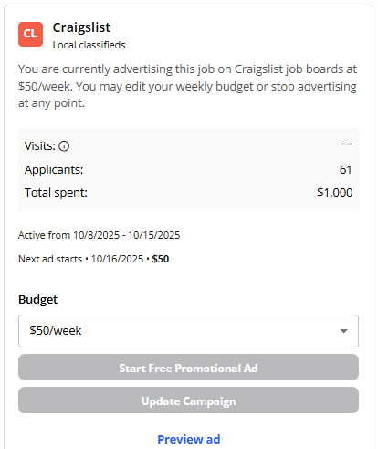 - To end the campaign, return to “Get more Applicants” and click “Not Advertising.”